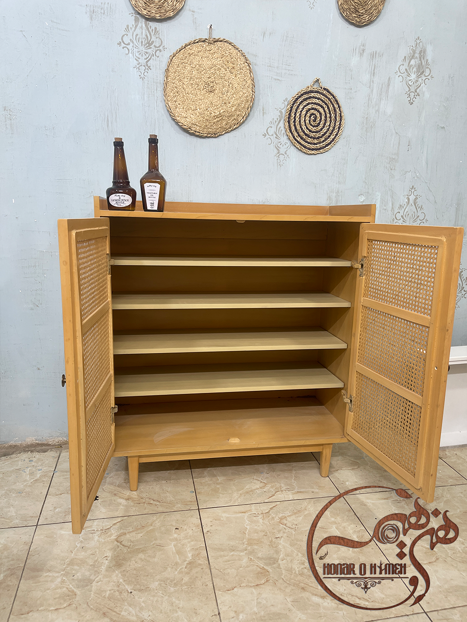 رنگ جذاب جاکفشی چوبی که با حصیر همرنگ خودش دیزیان شده بسیار این محصول را منحصر به فرد کرده است. جاکفشی چوبی مریم ظرفیت بسیار زیادی برای نگهداری کفش های شما دارد. علاوه بر این ها طبقات قابلیت جا به جایی دارد که این باعث می شود بتوانید پوتین های بلند هم داخلش قرار بدهید.