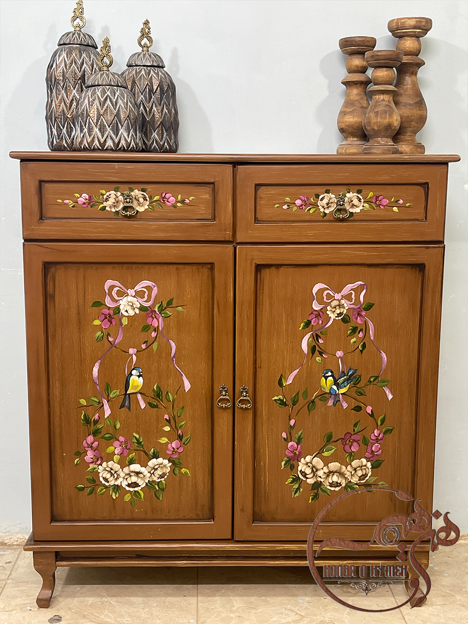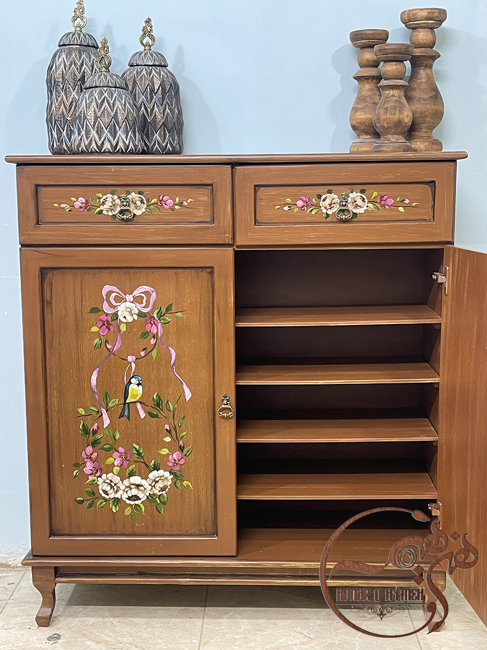 تلفیق رنگ زیبا، چوب روس و MDF خارجی و نقاشی خاص این جاکفشی/کنسول چوبی که به دست هنرمندان هنر و هیمه کشیده می‌شود، در نهایت تاثیر بسیار زیادی بر زیبایی خانه ی شما دارد.