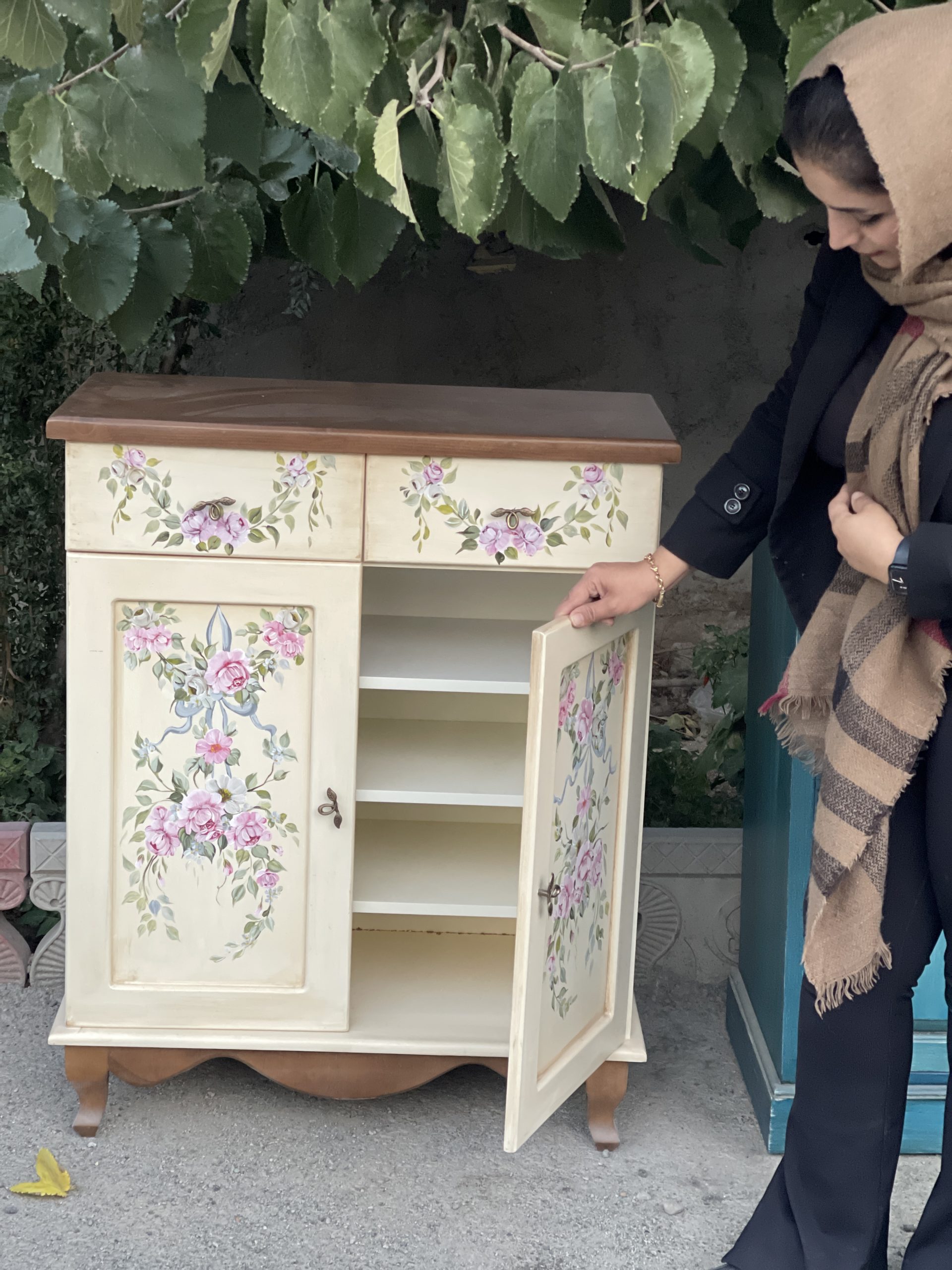 تلفیق رنگ زیبا، چوب روس و MDF خارجی و نقاشی خاص این جاکفشی/کنسول چوبی که به دست هنرمندان هنر و هیمه کشیده می‌شود، در نهایت تاثیر بسیار زیادی بر زیبایی خانه ی شما دارد.