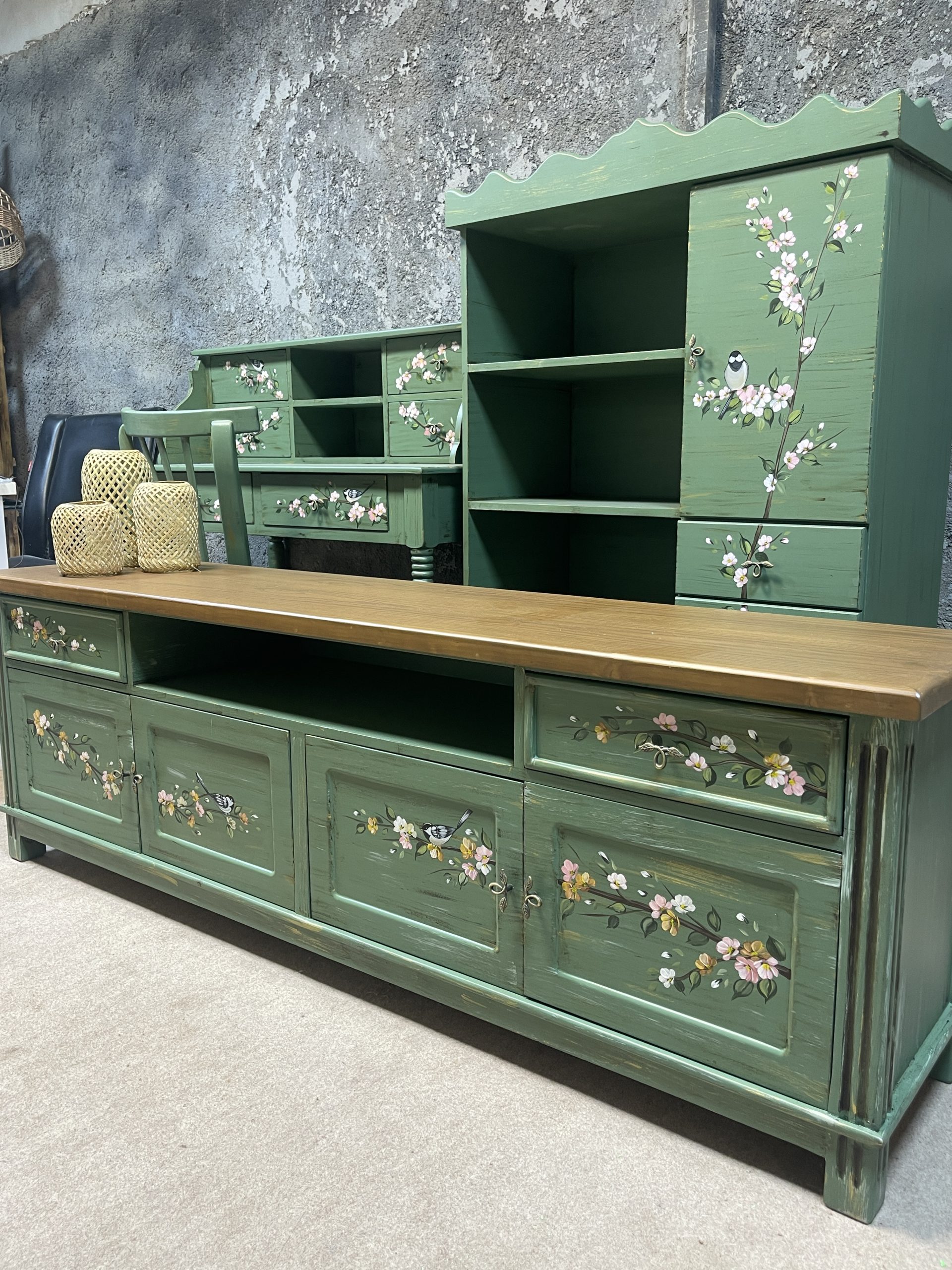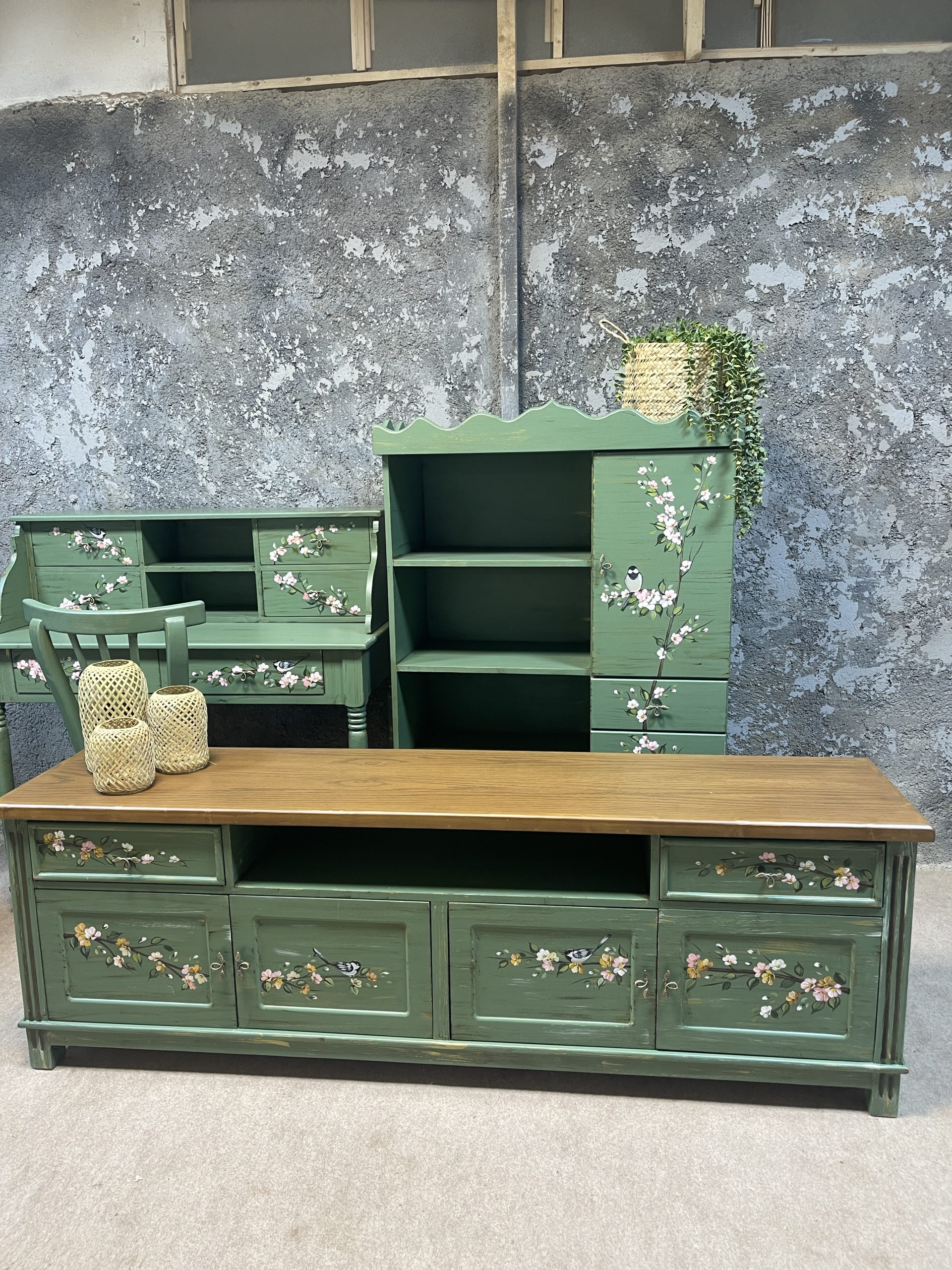 ست میز تیوی خلیج، میز تحریر و کتابخانه گندم+صندلی